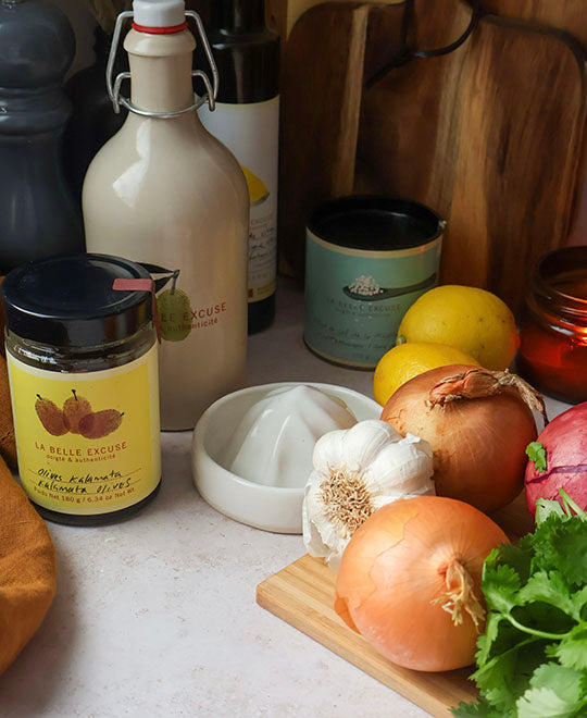 - 60 ml (1/4 cup) La Belle Excuse Kalamata olives