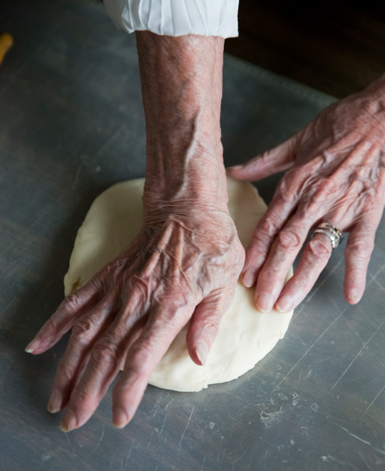 — In a food processor, combine all dough ingredients except for the water. Pulse until coarse and transfer to a bowl. Mixing with your hands, slowly add water until dough is crumbly but holds together when squeezed (do not overmix). Wrap in plastic film and chill for 30 minutes.