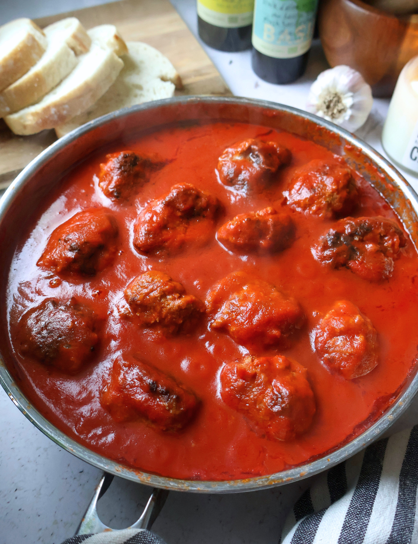 - Skillet option: Brown the meatballs in a large skillet over medium heat with a little olive oil, about 8 to 10 minutes, turning them regularly. Set aside.