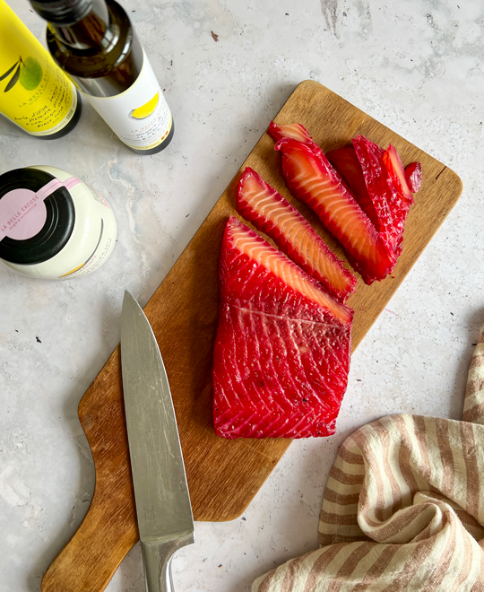 - After 24 to 36 hours in the refrigerator, remove the salmon from the plastic wrap and rinse with cold water. Pat dry.