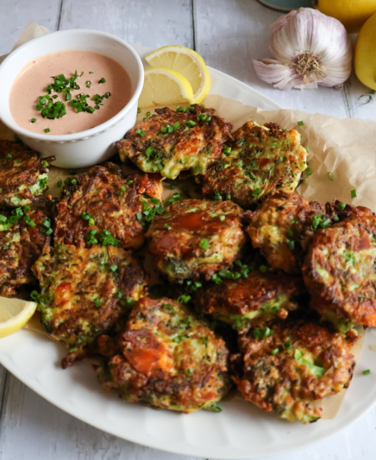 Zucchini and Broccoli Fritters with Chipotle Aioli
