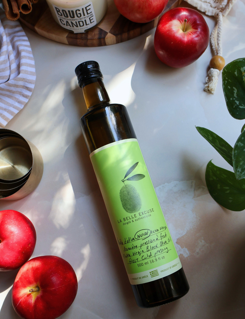 - 60 ml (1/4 tasse) d’Huile d’olive noire extra vierge La Belle Excuse,