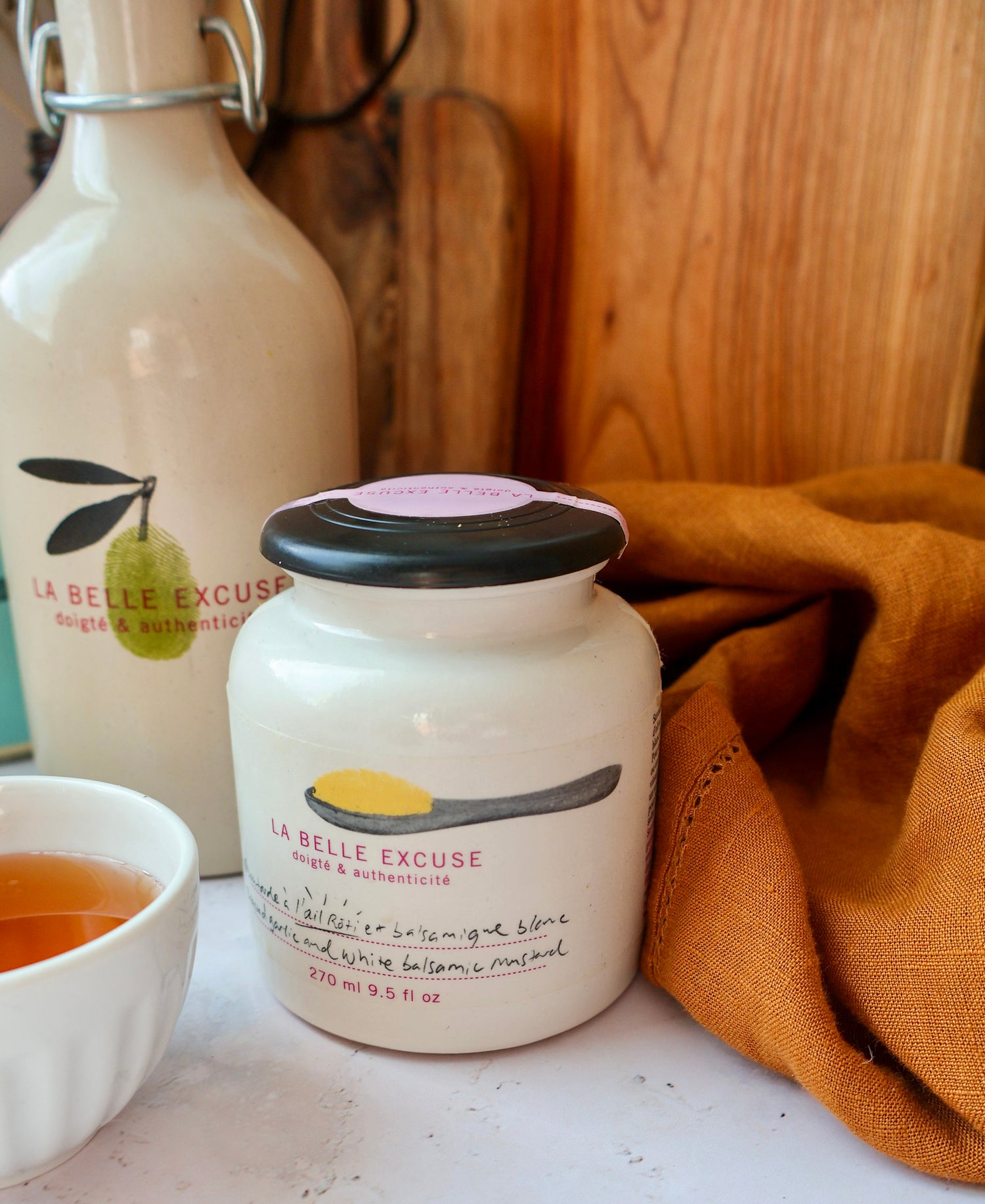- 45 ml (3 c. à soupe) de Moutarde à l’huile d’olive, ail rôti et balsamique blanc La Belle Excuse