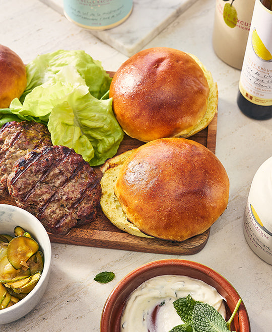 Burger à l’agneau, yogourt, feta et courgettes citronnées