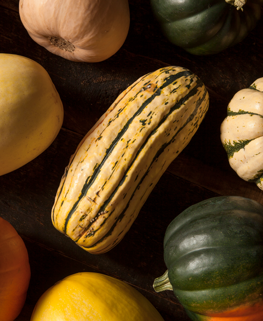- 2 courges Delicata (coupées en tranches d’ 1/2 pouce, graines retirées)