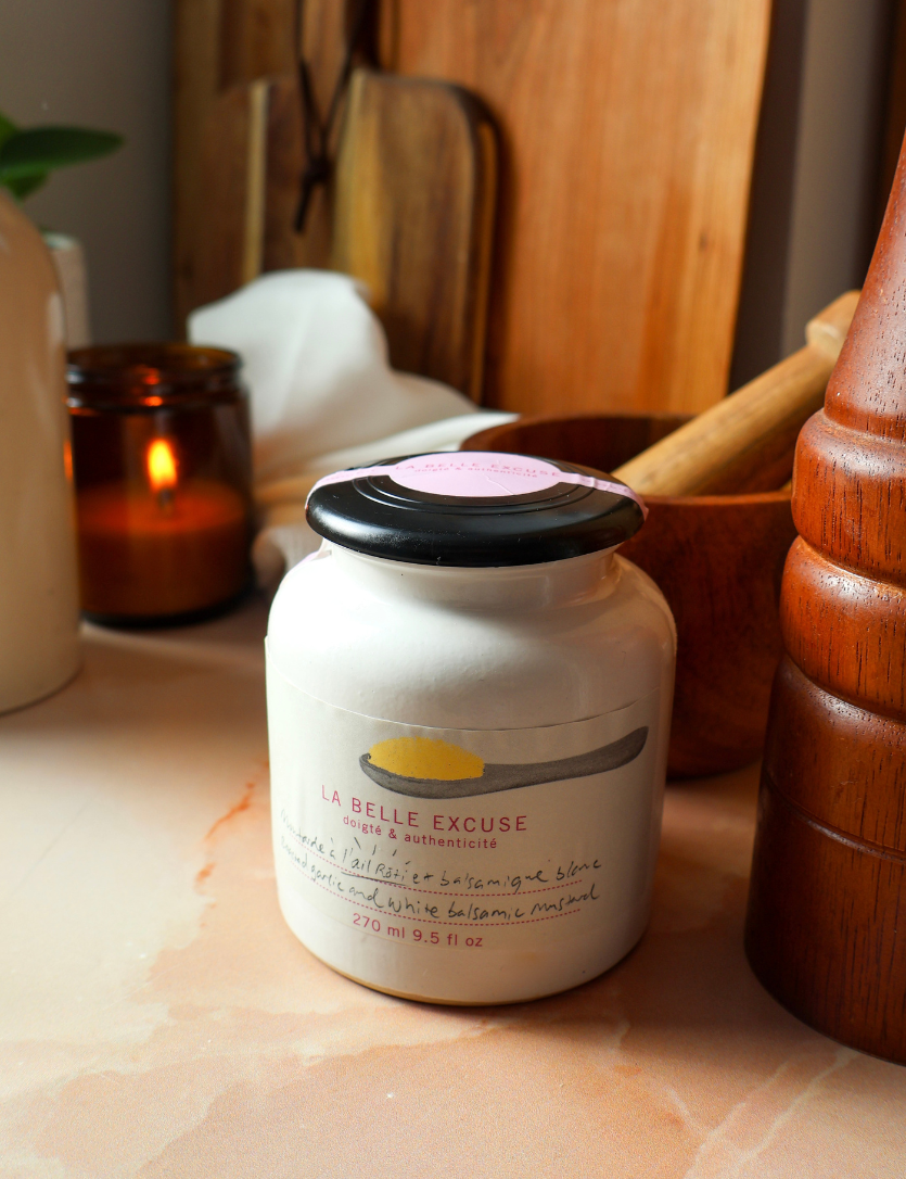 - 30 ml (2 c. à soupe) de Moutarde à l'huile d'olive, ail rôti et balsamique blanc La Belle Excuse