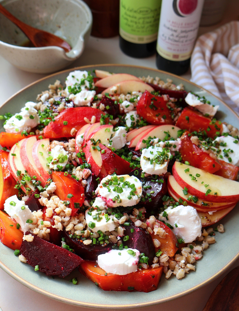 Salade d’automne aux betteraves, aux pommes et au fromage de chèvre