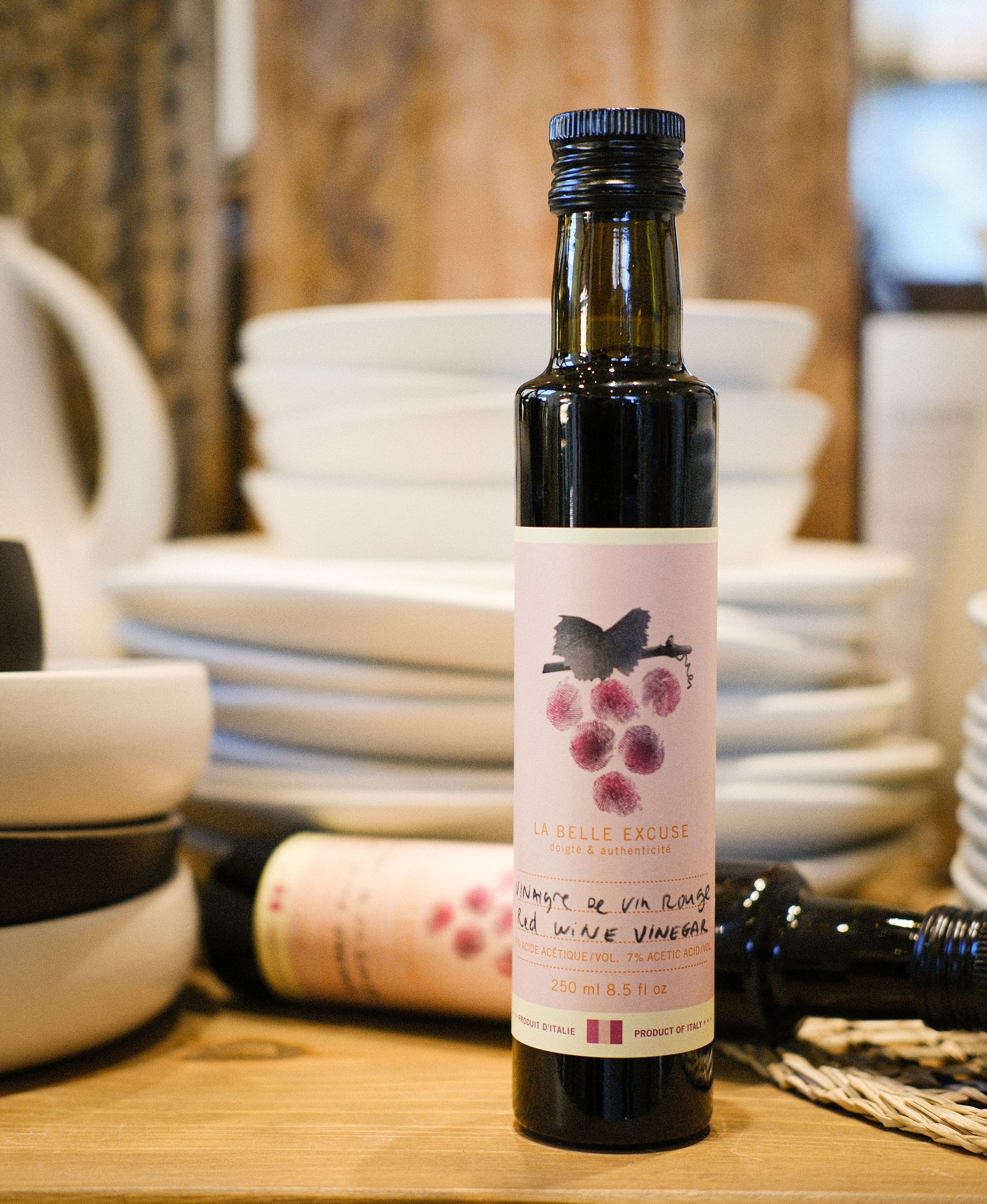 LA BELLE EXCUSE is offering you a red wine vinegar imported from Italy. Our vinegar is obtained from red Lambrusco grape must from the beautiful Modena region.